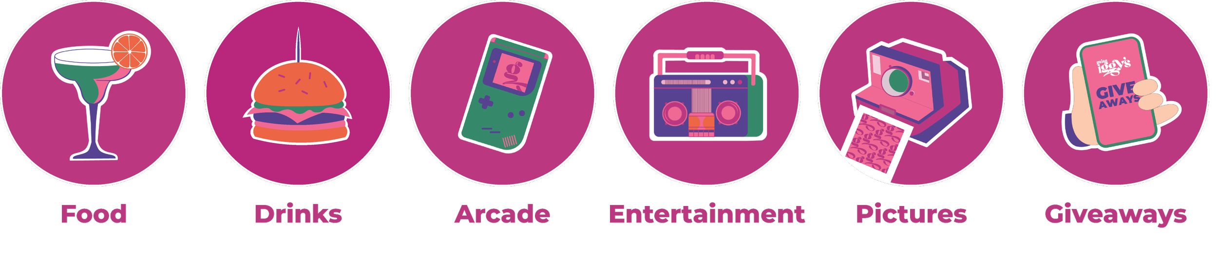 The logo draws on bold 90s-inspired typography, using exaggerated curves and playful letterforms that reflect the era’s love of fun, movement, and visual excess. The flowing shapes create a sense of energy and rhythm, echoing the social, lively atmosphere of a space designed for connection and good times. Its confident pink tone nods to the 90s embrace of colour, pop culture, and nightlife, while the retro styling feels nostalgic without being dated. Altogether, the logo signals a venue that’s vibrant, immersive, and unapologetically fun — a modern throwback to an iconic decade.